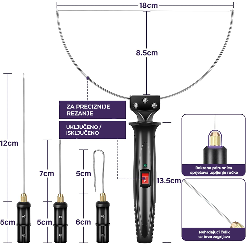 - 12 cm i 7 cm ravni vrući nož za precizno rezanje