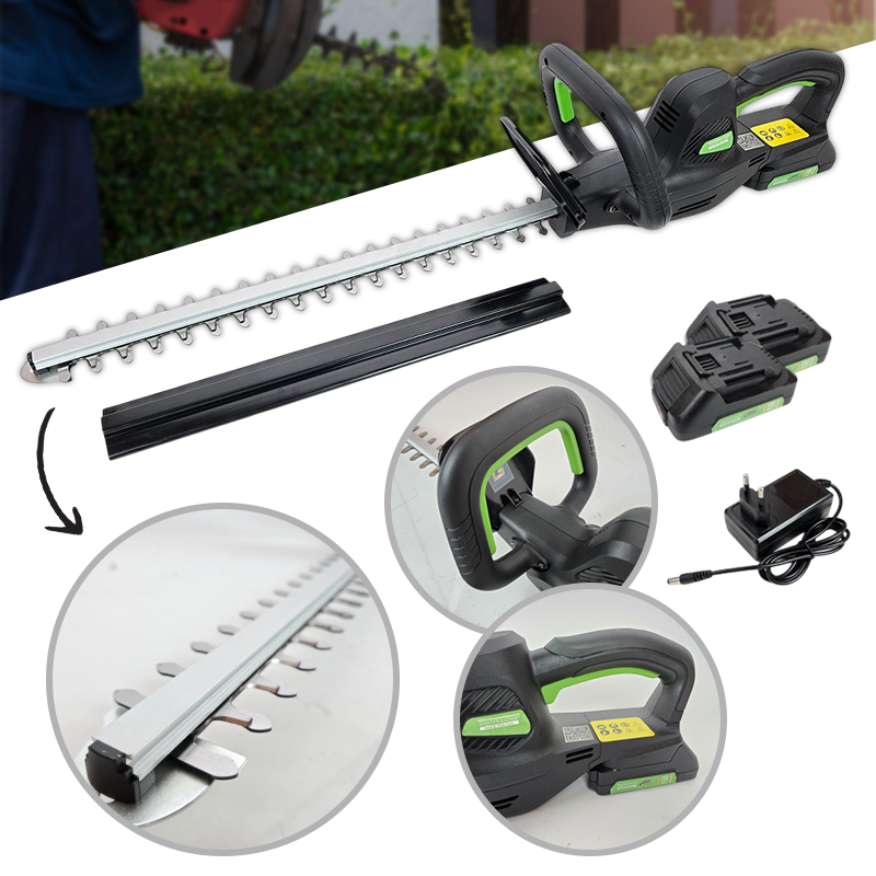 - Širok zahvat rezanja – 50 cm dugačak mač omogućuje brzo oblikovanje većih površina.