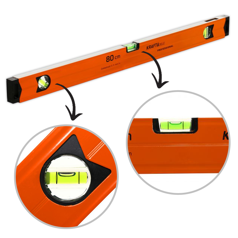 - Visoka točnost – precizno mjerenje omogućeno s tri bočice: jedna vodoravna i dvije okomite.