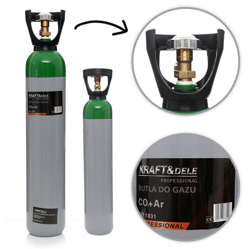Plinska boca kapaciteta 8 litara, namijenjena za punjenje smjesom argon + ugljikov dioksid (Ar + CO₂). Idealna za korištenje u MIG/MAG postupcima zavarivanja u zaštitnoj atmosferi.