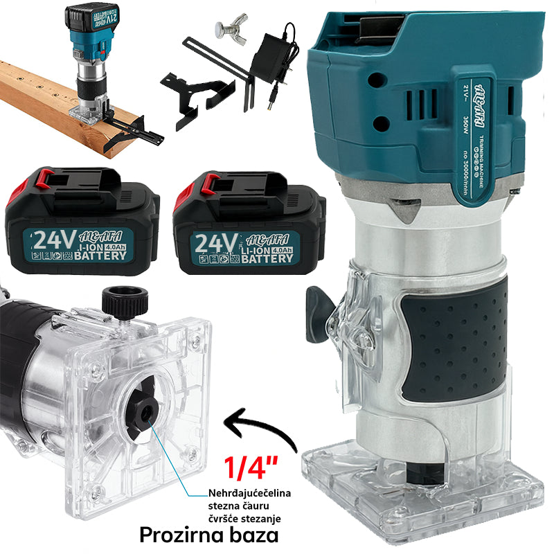 Aku glodalica drva 24 V s dvije Li-Ion baterije