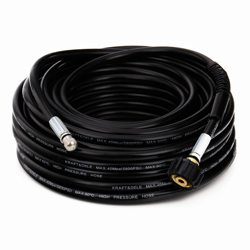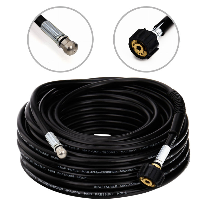 Crijevo za čišćenje kanalizacije Kraft&Dele dužine 20 metara namijenjeno je visokotlačnim peračima za učinkovito čišćenje i deblokadu kanalizacijskih i odvodnih cijevi. Zahvaljujući mesinganoj mlaznici s posebnim sfernim oblikom, omogućuje snažan udar na začepljenja i lako prolazi kroz zavoje i suženja u cijevima.