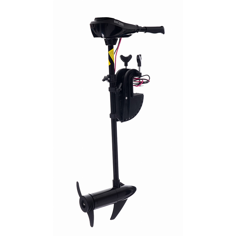 Električni izvanbrodski motor marke KRAFT&DELE sa snagom potiska od 64 lbs, namijenjen čamcima i gumenjacima. Kompaktna konstrukcija omogućuje jednostavnu montažu i korištenje na manjim plovilima.