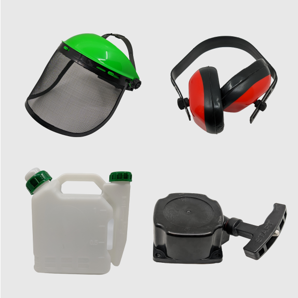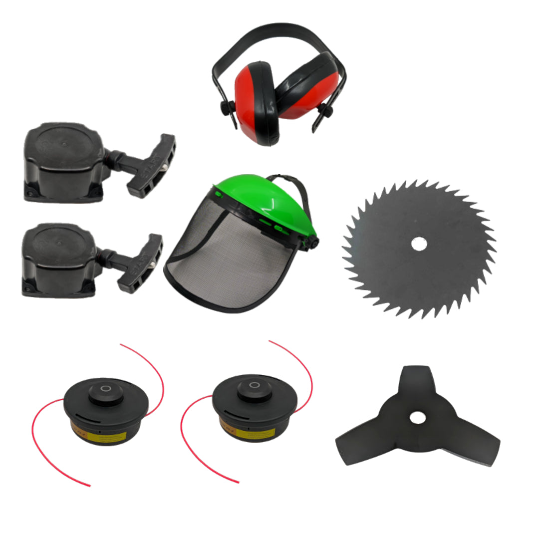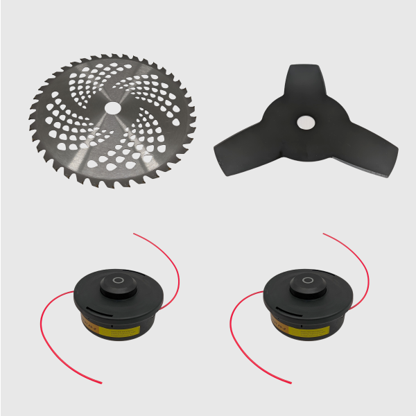 Pribor od 10kom: 1x trimer glava, 2x rezna ploča, 1x zaštitni vizir, 1x uprtač, 1x posuda za mješanje