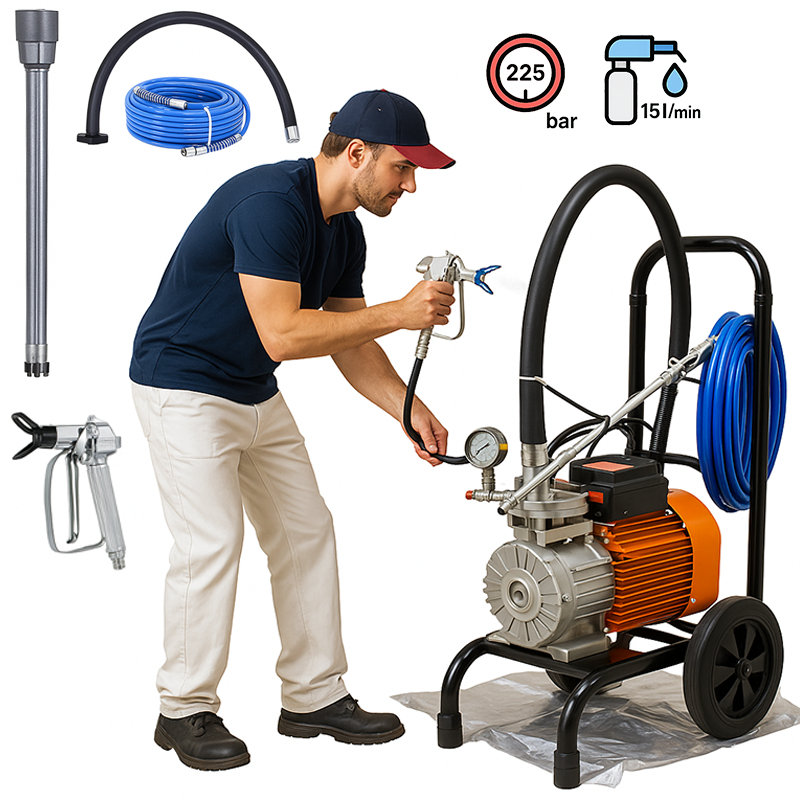 Oživite svoje zidove brzo, kvalitetno i bez muke uz snažni agregat za bojanje KRAFT&DELE Idealan za profesionalce i amatere – uštedite vrijeme i materijal, a rezultat je besprijekoran finiš!