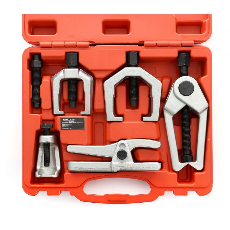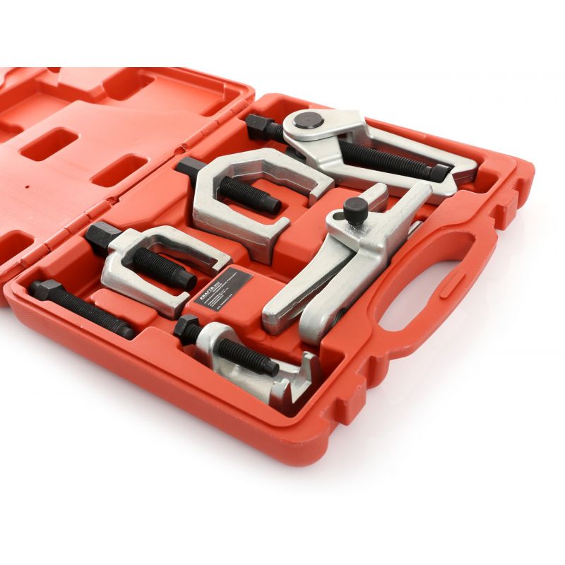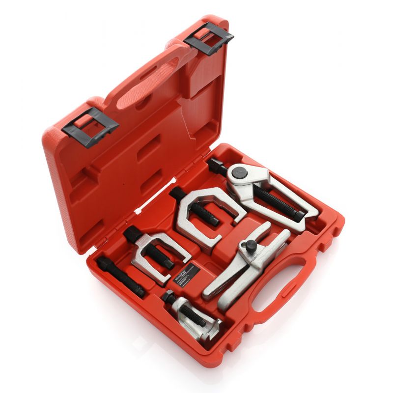Set od 5 izvlakača za montažu i demontažu krajnika , kugli , zglobova , ramena i sličnih stvari za sva vozila. Alat je izrađen od pocinčanog i kaljenog čelika. Alat dolazi u praktičnom plastičnom koferu što mu osigurava jednostavan transport i skladištenje.