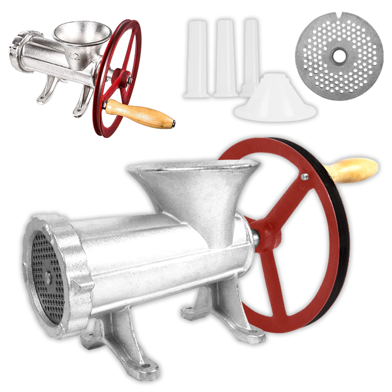Ova visokokvalitetna njemačka mašina za meso, dizajnirana je za vrhunsku učinkovitost i dugotrajnost. Idealan je izbor za profesionalce i entuzijaste koji traže pouzdan alat za pripremu mesa i kobasica. Robusna lijevana konstrukcija i metalni ležajevi na osovini osiguravaju dug vijek trajanja, dok je set opremljen svim potrebnim nastavcima za jednostavan i efikasan rad.