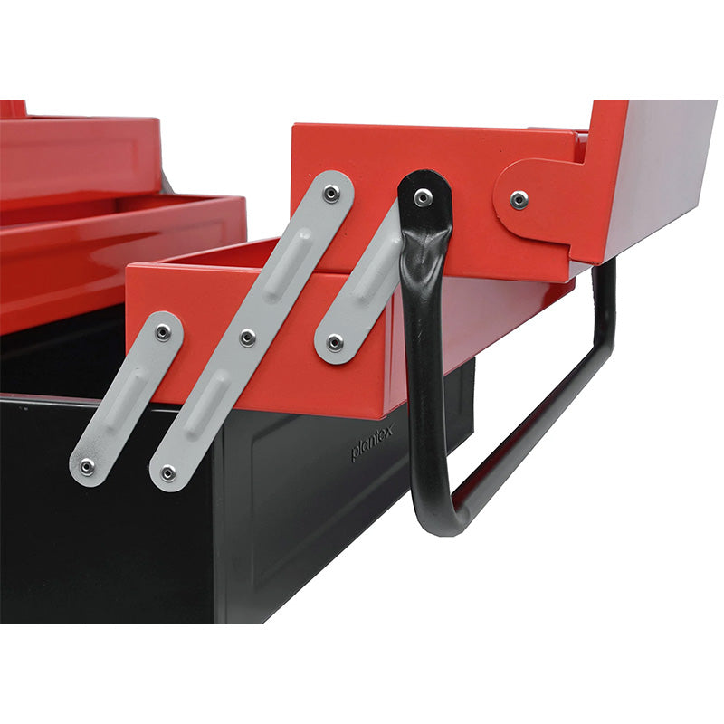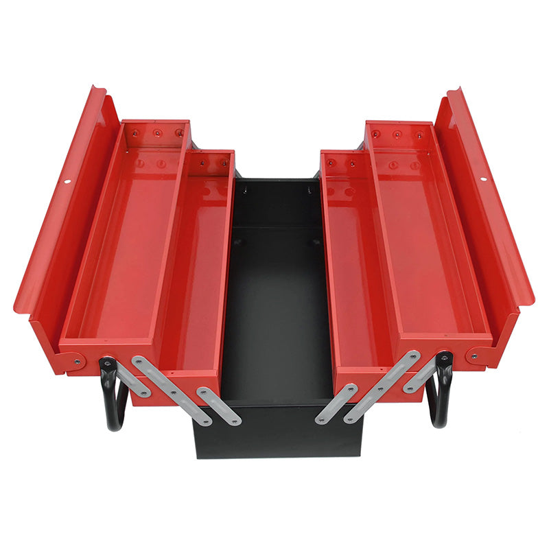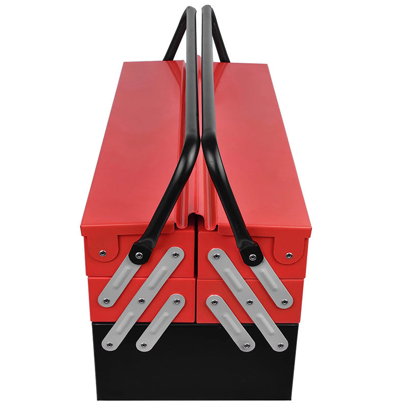 Ova kutija je opremljena s mnoštvom ladica, dodatno osigurane zaključavanjem, što čini vaš alat lako dostupnim, a istovremeno i sigurno pohranjenim. Zahvaljujući prostranom unutarnjem prostoru i praktičnoj ručki, kovčeg je savršen za rad na gradilištu ili kod kuće, pomažući vam da održavate sve uredno i organizirano. Izrađen od tankog lima, ova kutija je dizajnirana da bude što lakša kako bi omogućila jednostavno nošenje bez dodatnog opterećenja.