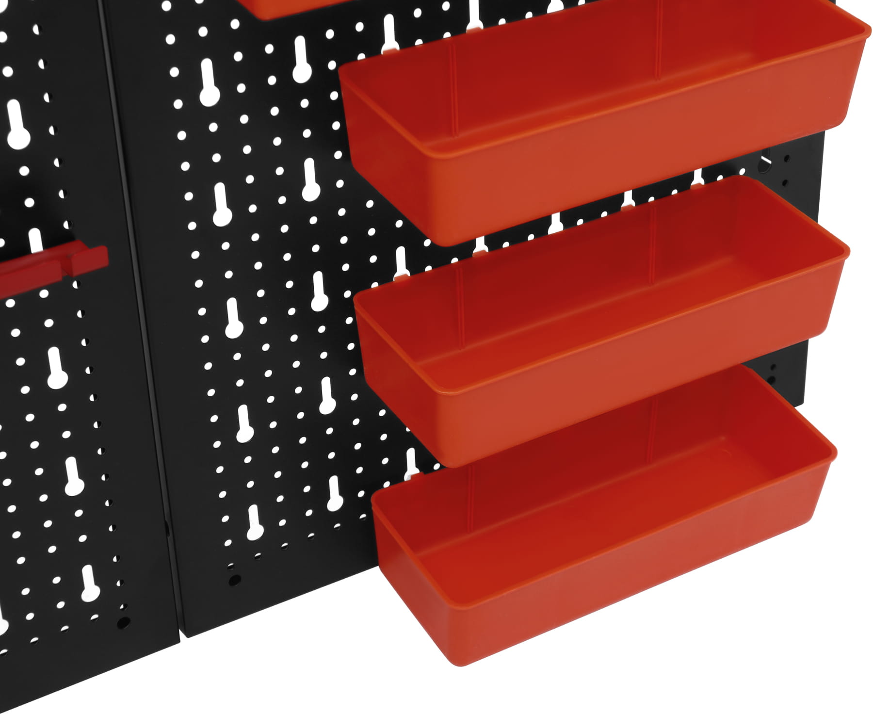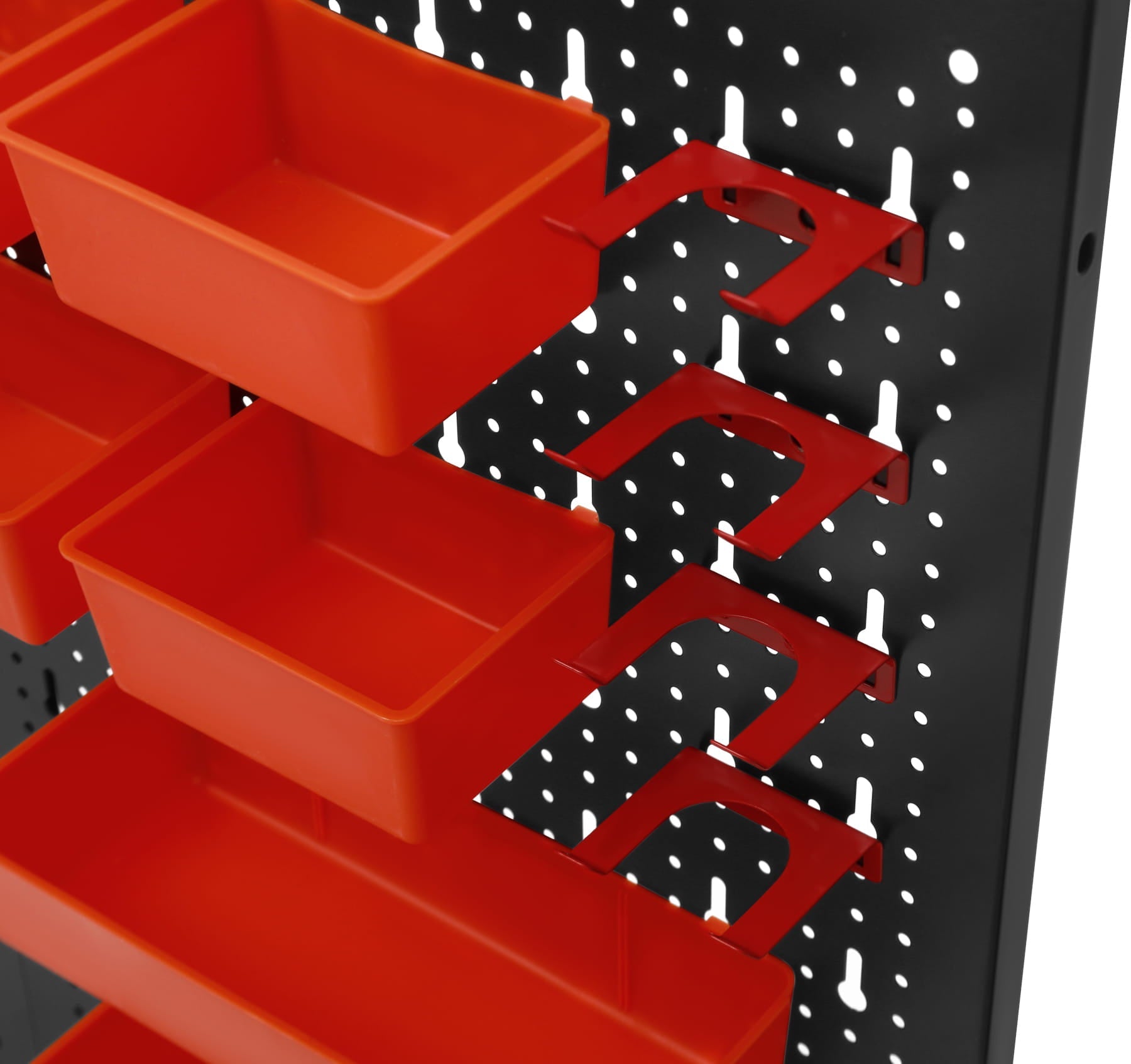 Perforirana površina omogućuje brz montaž kukica, držača i posudica, pa su ručni alati i sitni potrošni materijal uvijek na dohvat ruke. Idealno rješenje za više reda, brži rad i manje gubljenja vremena na traženje alata.