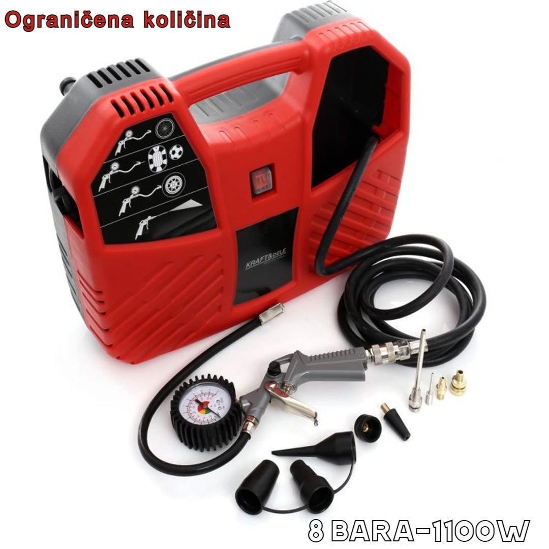 Mobilni bezuljni kompresor 1100W -8BAR+ 9 dodataka