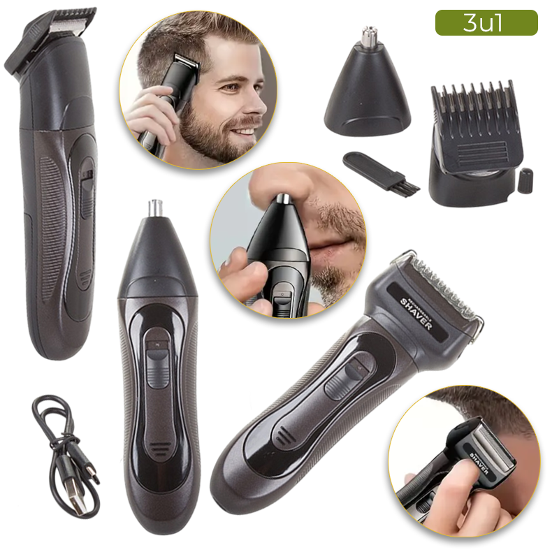 Nastavci: 3 zamjenjiva (brada, nos, kosa) + zaštitni poklopac