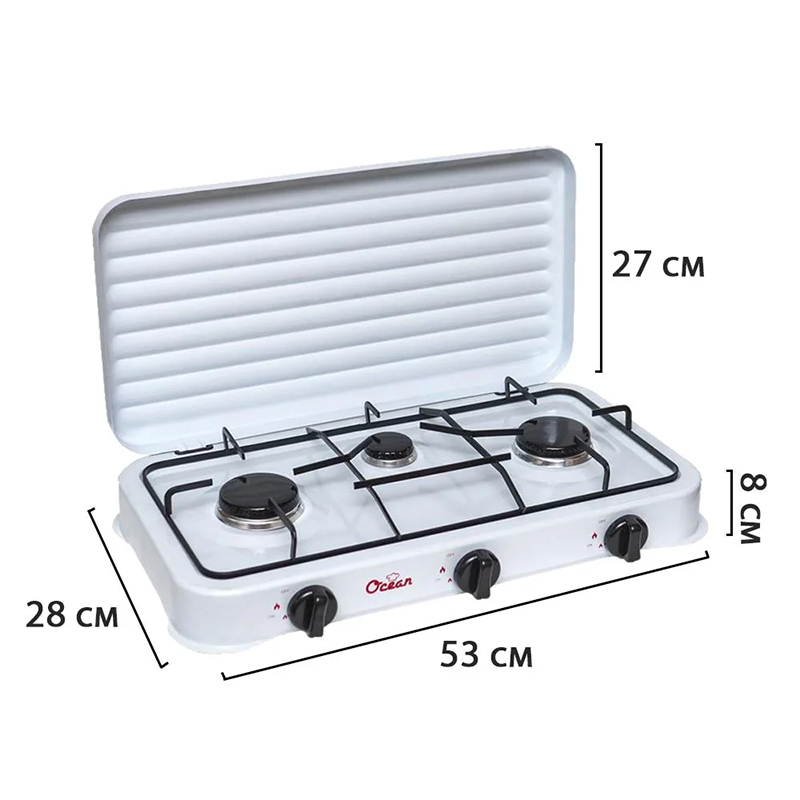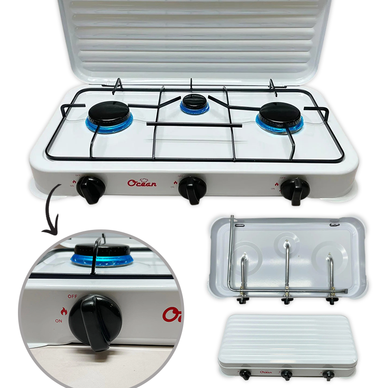 Stolni plinski štednjak s 3 plamenika Ocean idealan je za kampiranje, putovanja, ribolov, lov ili korištenje na vikendicama i u manjim kuhinjama. Njegov kompaktan i lagan dizajn omogućuje jednostavno prenošenje i postavljanje gdje god vam zatreba.