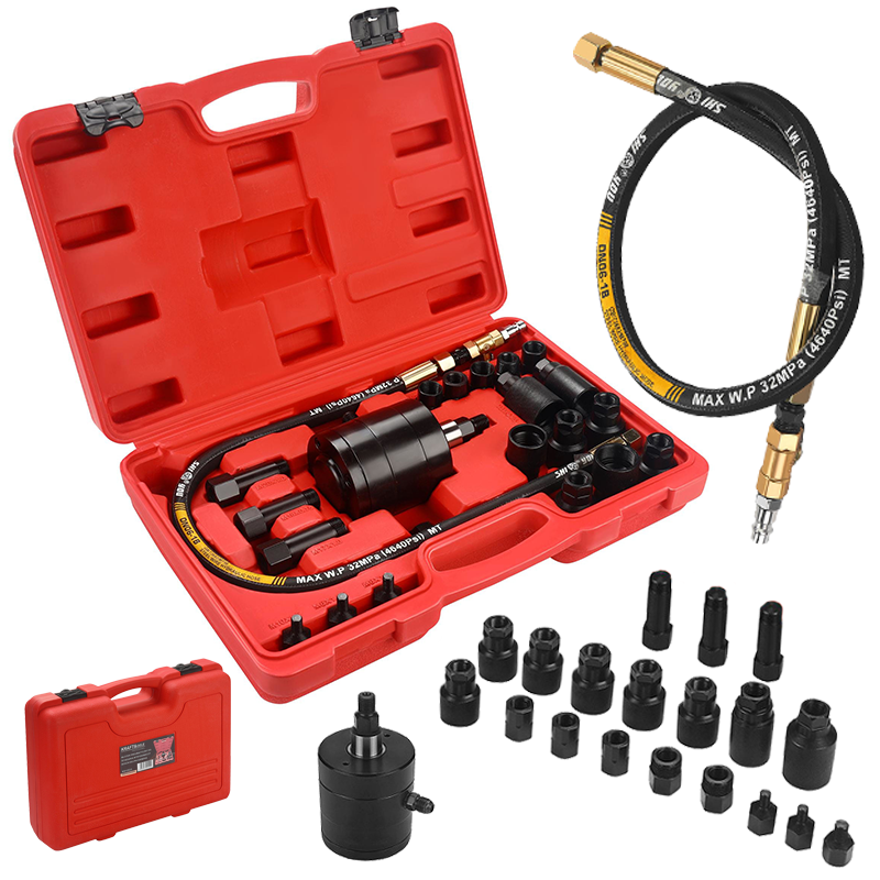 KD12533 je profesionalni pneumatski čekić namijenjen učinkovitom uklanjanju zapeklih injektora Bosch, Delphi i Siemens. Zahvaljujući udarnom mehanizmu i korištenju komprimiranog zraka, alat omogućuje brzo i sigurno vađenje injektora, smanjujući rizik od oštećenja glave motora i samih injektora.