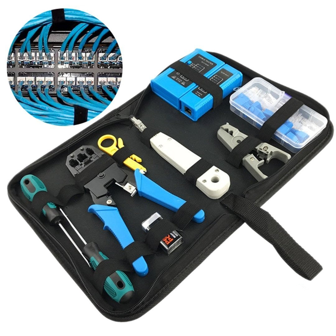 ➡ Kompletni alati za održavanje mreže: Komplet alata 9-u-1 uključuje kliješta za presovanje, ispitivač mrežnog kabela, nož za skidanje žica, ravni /križni odvijač, nož za skidanje kliješta, alat za probijanje i 10 priključaka RJ45.
