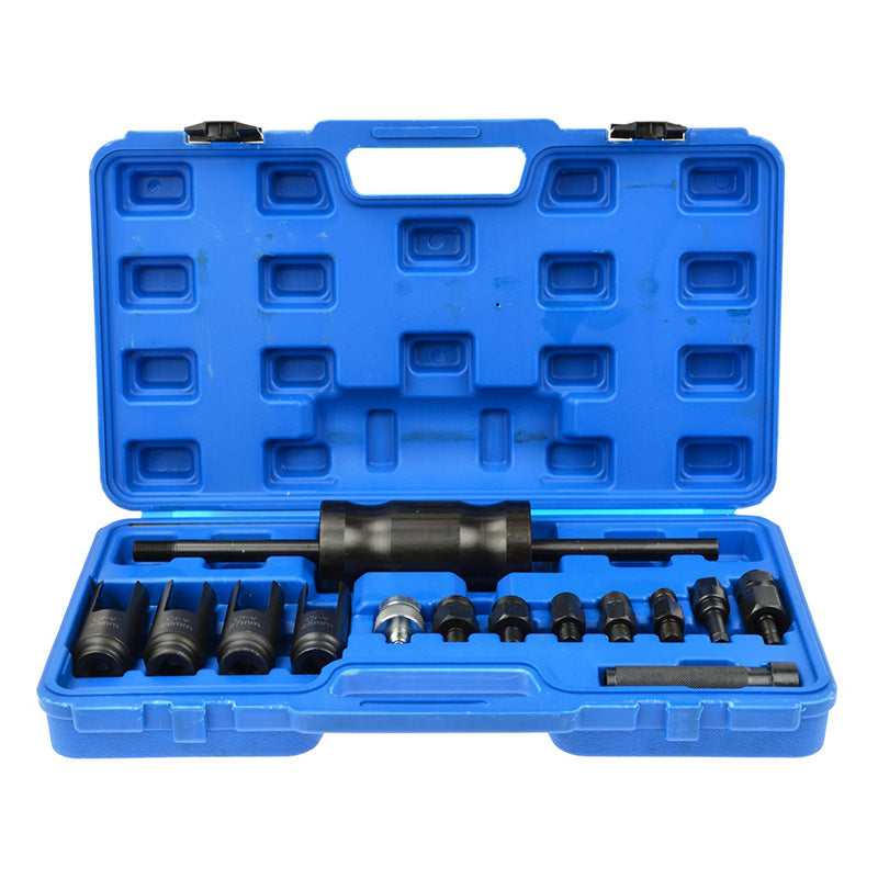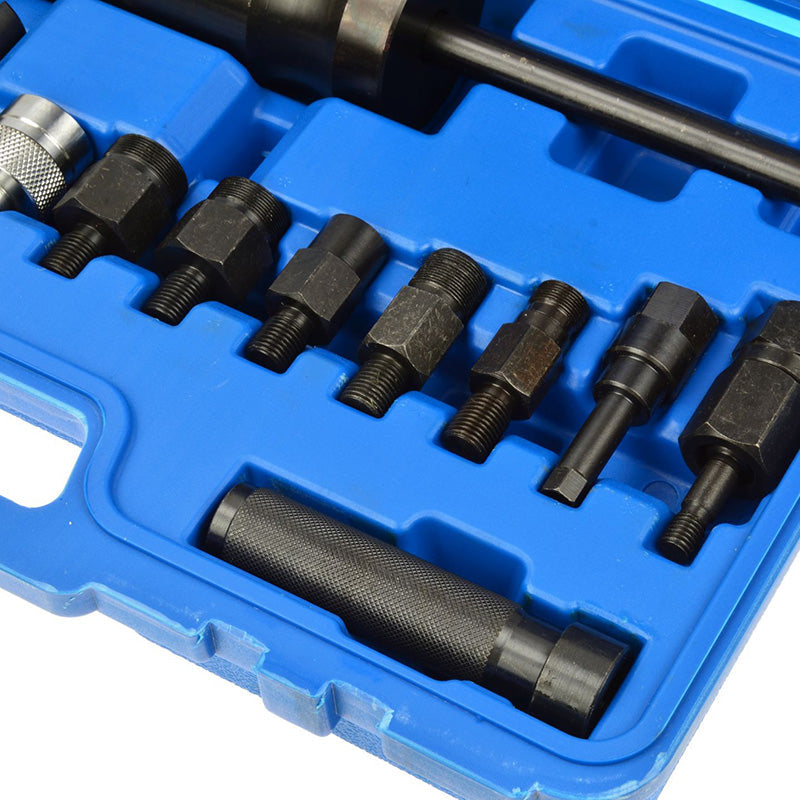 Ovaj komplet vam pruža sve što vam je potrebno za profesionalno rukovanje injektorima na vozilima. S različitim adapterima, šesterokutnim ključevima i inercijskim izvlačačem, ovo je nezamenljiv alat za radionice koje se bave servisiranjem i održavanjem dizel injektora.