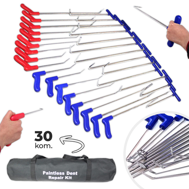 Ovaj set od 30 PDR alata za popravak udubljenja savršen je za profesionalce koji žele jednostavno i učinkovito ukloniti udubljenja na vozilima bez potrebe za ponovnim bojanjem. Izrađen od visokokvalitetnog čelika, ovaj set alata nudi izdržljivost i dugotrajnost.