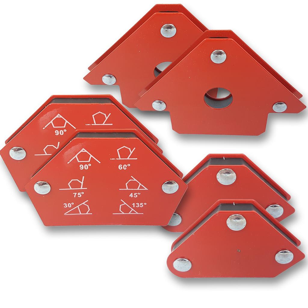Praktični pomagač za zavarivanje! Ovaj set snažnih magneta drži materijal pod različitim kutovima (45°, 90°, 75° i 135°) koje trebate za precizno zavarivanje. Može se koristiti kao dvostrani držač za različite zavarivačke radove.