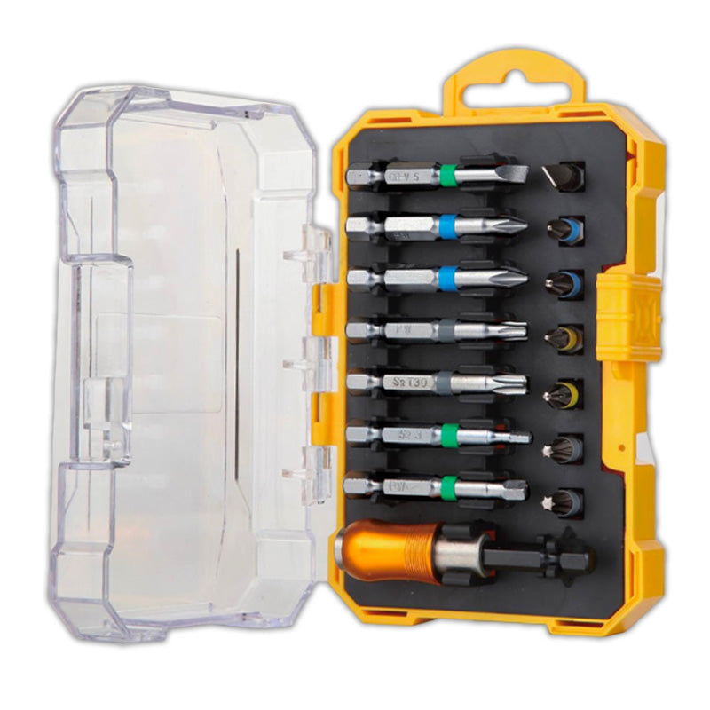 Profesionalni set bitova sadrži 15 komada i dolazi s raznolikim spektrom nastavaka koji zadovoljavaju potrebe preciznog i zahtjevnog rada.