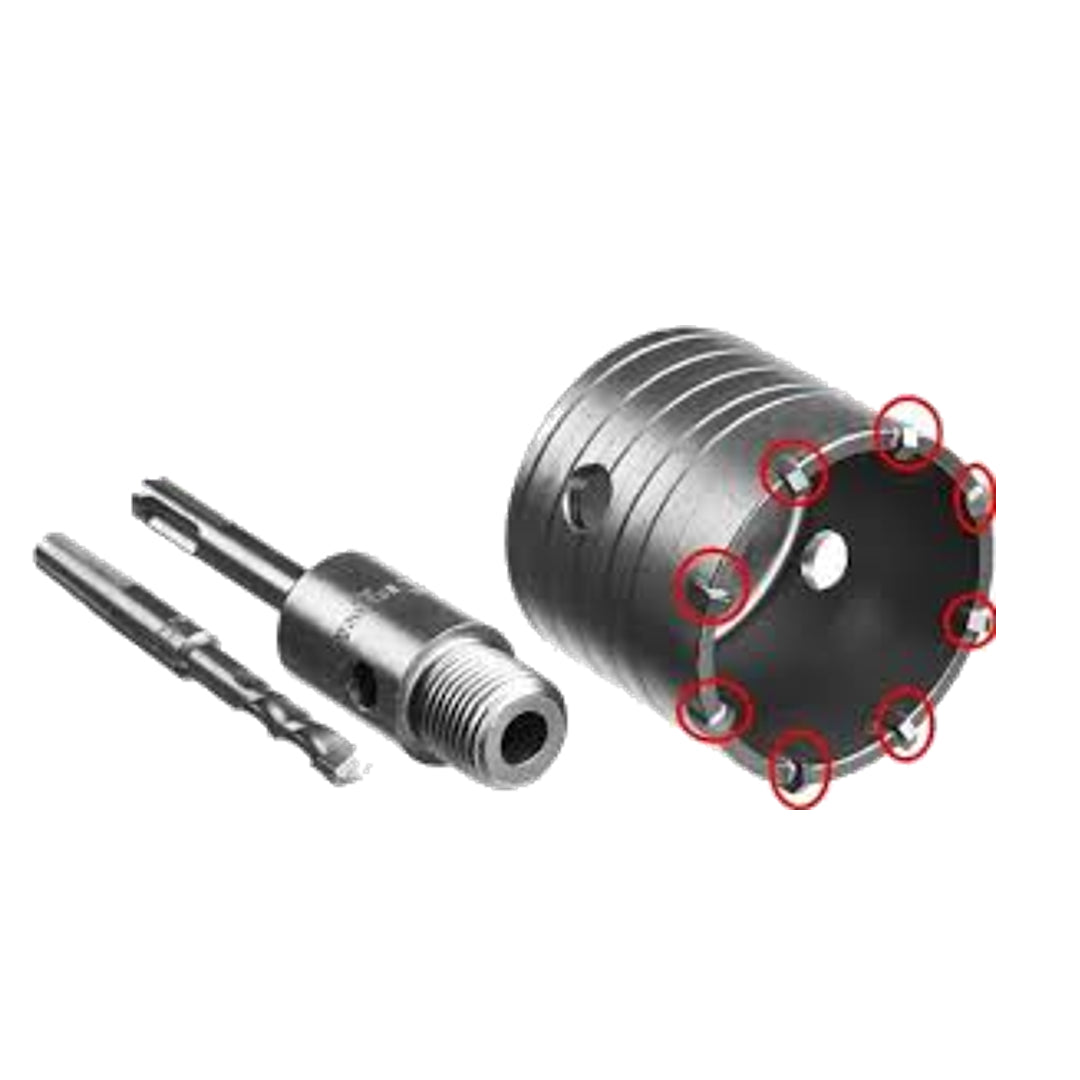 Krune primjerene za suho i mokro bušenje, idealne za upotrebu na električnim bušilicama za bušenje granita, tvrdog kamena, betona i armiranega betona.