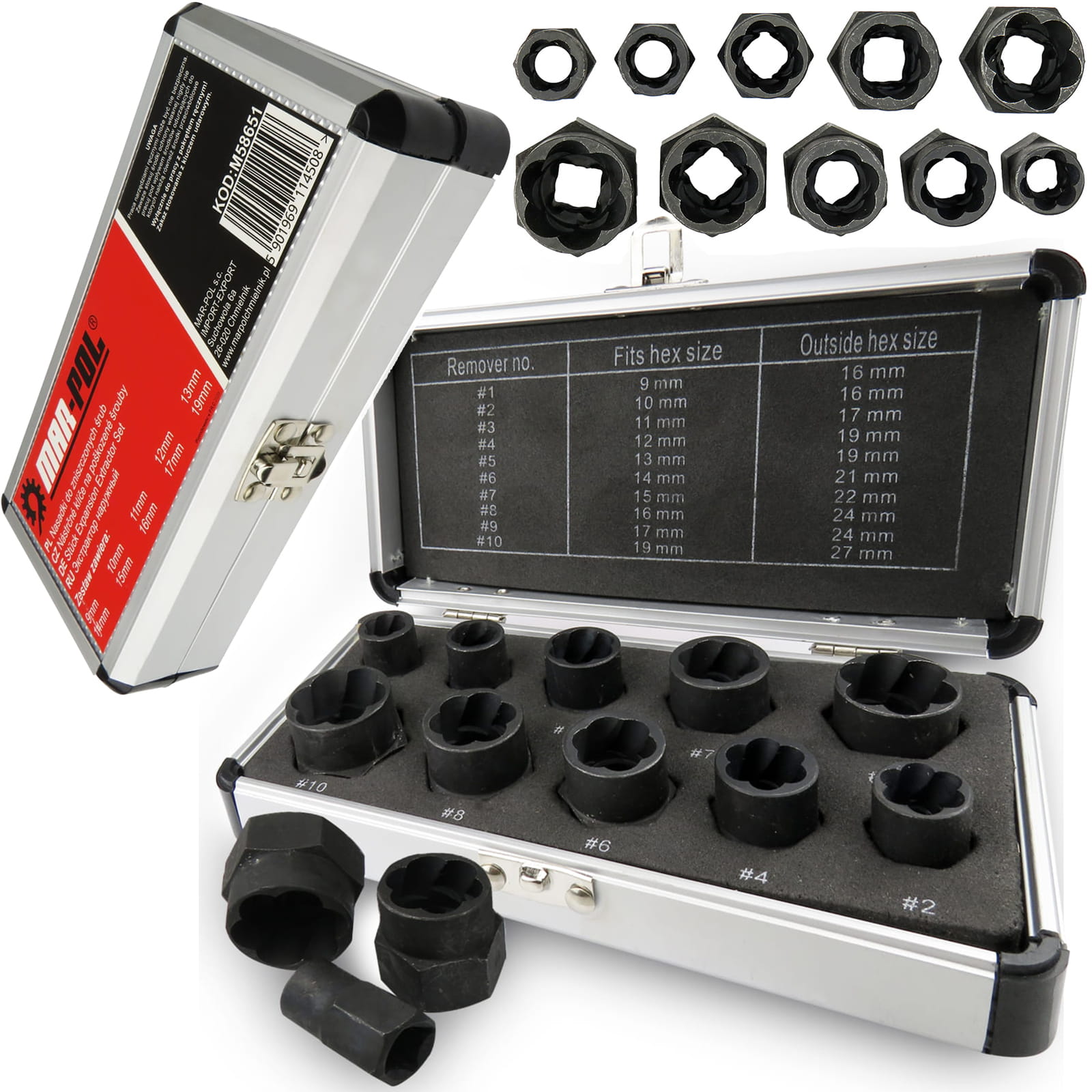 Ovaj 10-dijelni set alata za vađenje vijaka je odličan za otpuštanje oštećenih vijaka i matica.