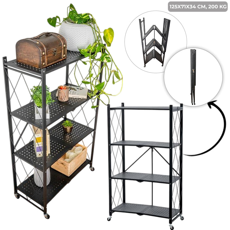 Metalni sklopivi regal s 4 police na kotačima | 125x71x34 cm | Nosivost 200 kg