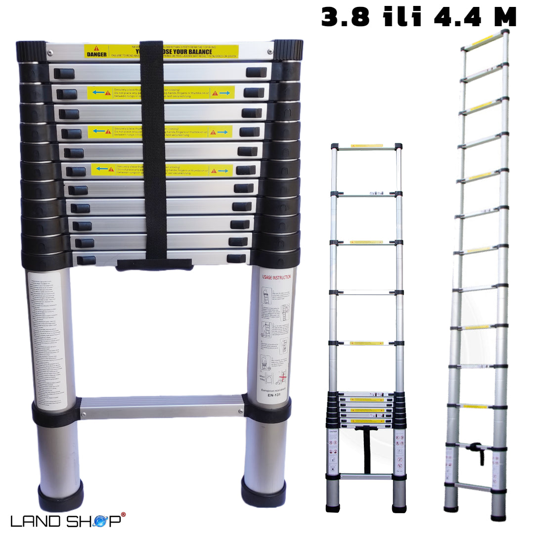 Teleskopske ljestve imaju univerzalnu namjenu. Izrađene su od čvrstog i kvalitetnog aluminija te podnose teret do 150 kilograma. Zahvaljujući sklapanju, jednostavne su za transport i skladištenje. Ljestve imaju ugrađeno sigurnosno zaključavanje, koje sprečava iznenadno otvaranje i zatvaranje.