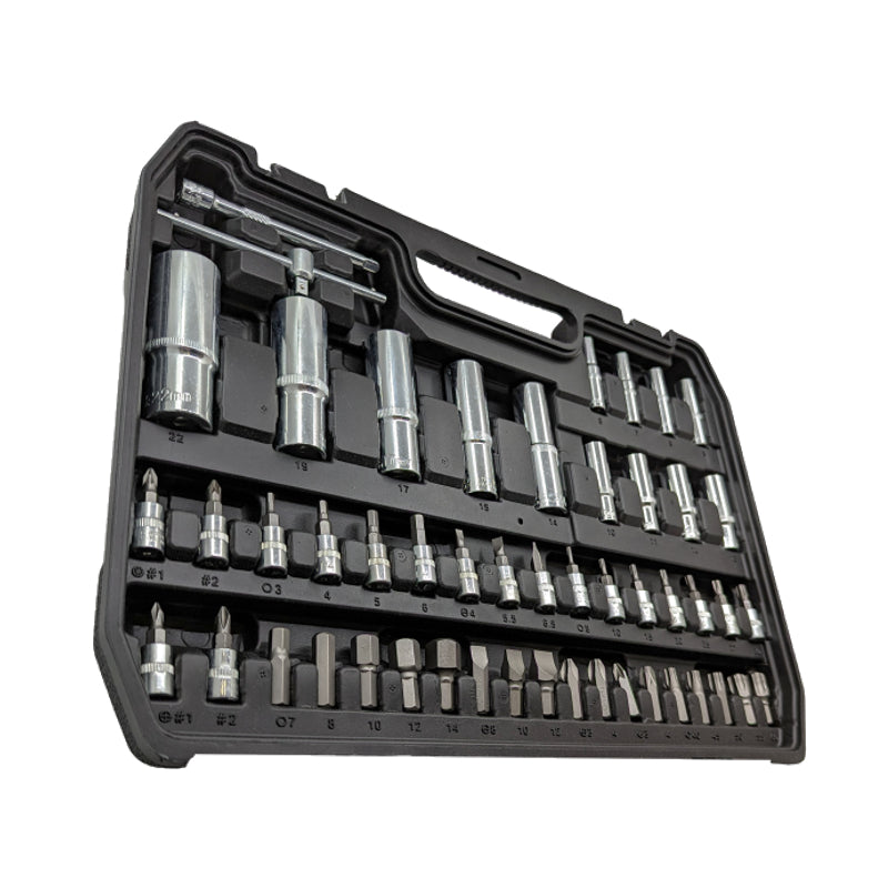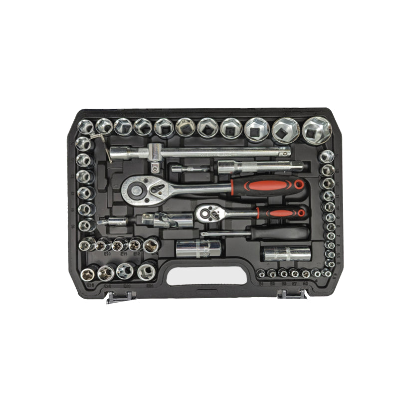 Komplet alata-gedora sastoji se od 108 dijelova s 1/2″ račnom i manjom 1/4″ račnom, nastavkom za ručnu upotrebu i produžetkom. Primjeren je za zahtjevnije radove i kad ste ograničeni s prostorom. Komplet je izrađen od krom-vanadij čelika, koji ima veću čvrstoću i jamči manje trošenje.