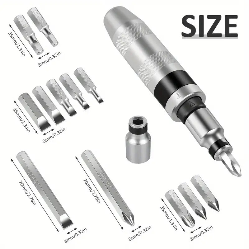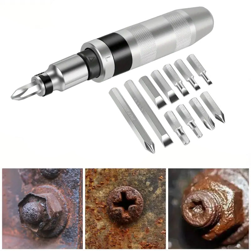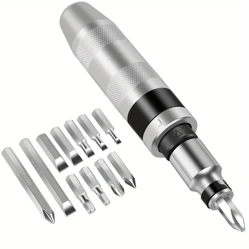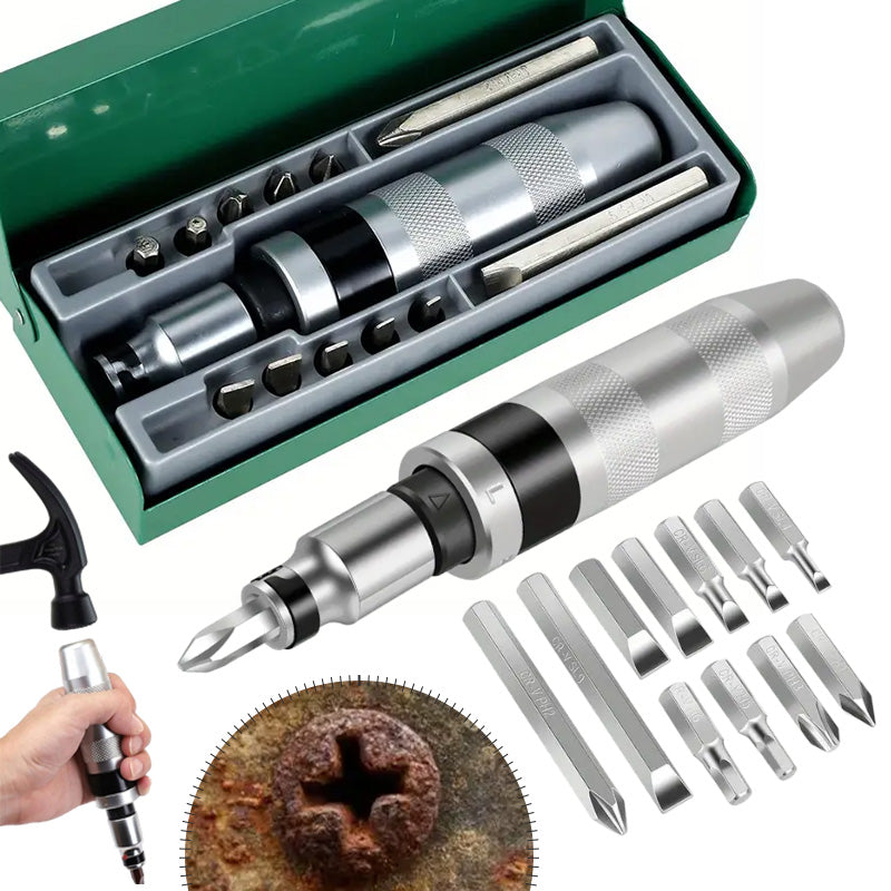 Udarni odvijač od krom-vanadij čelika sa setom od 12 bitova.