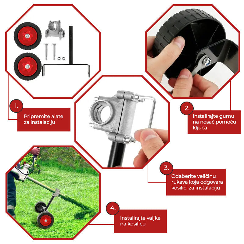 Univerzalni potporni kotači za trimere ne samo da olakšavaju košenje, nego i poboljšavaju stabilnost i manevriranje vaše kosilice, čineći svaki zadatak košenja bržim, efikasnijim i ugodnijim.
