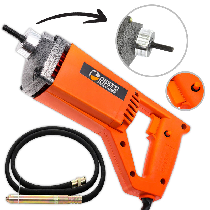 Profesionalni vibrator za beton s visokom snagom od 1100W omogućuje učinkovito uklanjanje mjehurića zraka iz betona, povećavajući njegovu gustoću i trajnost. Idealan je za kompaktiranje betonskih podloga, deka, temelja i zidova. Ovaj vibrator može raditi bez opasnosti od pregrijavanja, zahvaljujući izdržljivom i čvrstom dizajnu vibro igle.