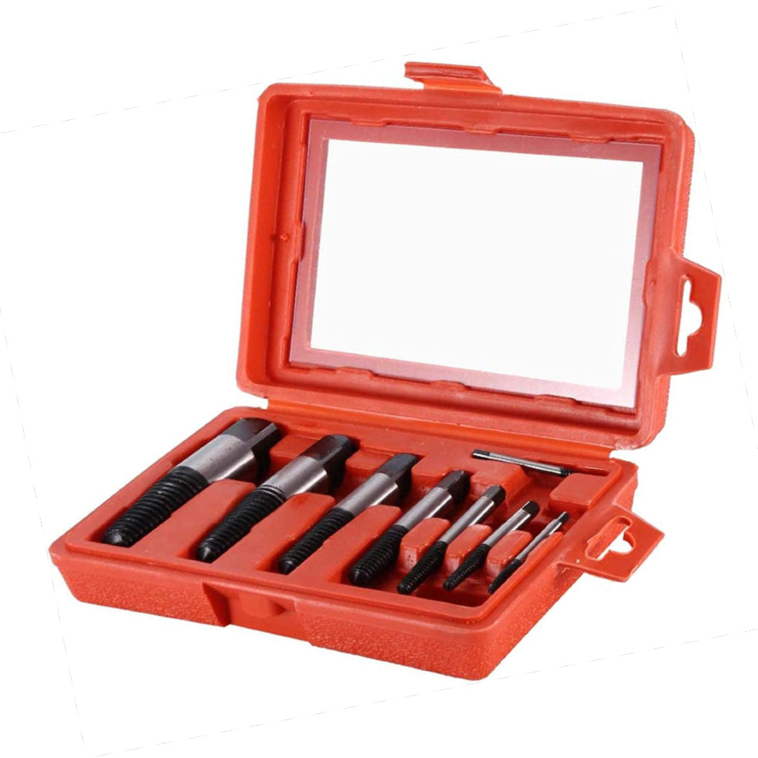 Ovaj alat za izvlačenje vijaka odgovara na sve bušilice i gedore, a dolazi s osam veličina ureznica za izvlačenje vijaka koje rade s bilo kojim alatom za izvlačenje vijaka od 3-20 mm. Ovaj jednostavan, ali učinkovit alat za izvlačenje koristi se za okretanje oštećenog vijka u smjeru suprotnom od kazaljke na satu dok se vijak ne otpusti.