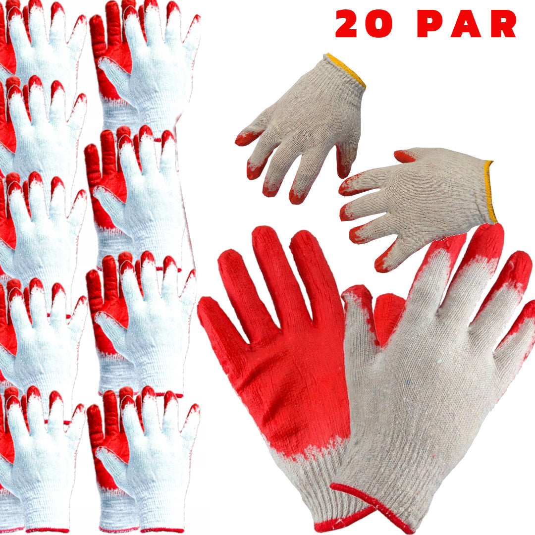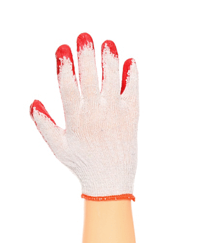 Rukavice pletene od mešavine pamuka i poliestera, bešavne. Čvrsta guma zalepljena na dlan rukavica omogućava dodatnu bezbednost u radu sa grubim materijalima.